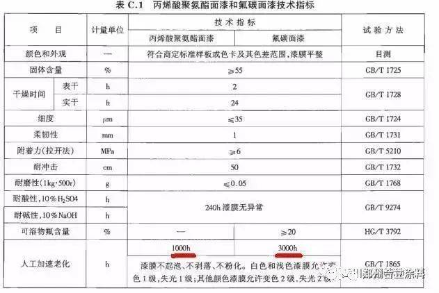 注:上表為JTT 695-2007 混凝土橋梁結(jié)構(gòu)表面涂層防腐技術(shù)條件要求