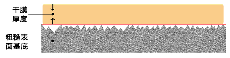 此外,由于粗糙表面對干膜厚度測量結(jié)果有較強(qiáng)的影響,通常情況下粗糙表面的干膜厚度被認(rèn)為是基層輪廓波峰以上的漆膜厚度。