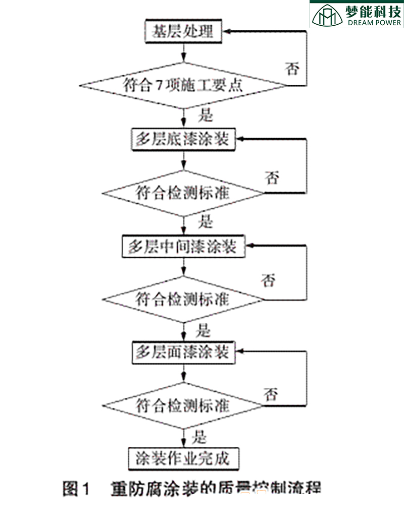 重防腐涂料涂裝的質(zhì)量控制流程見圖1。需要說明的是,除圖1顯示的流程外,各涂料生產(chǎn)廠家按照規(guī)范要求,會隨產(chǎn)品附一份使用指南,應(yīng)當(dāng)同時(shí)參照指南要求,確定檢查指標(biāo)和程序。