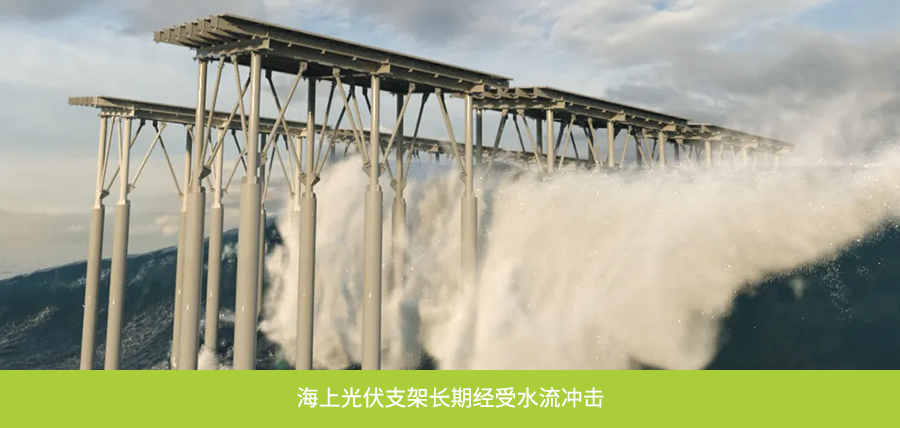 海洋環(huán)境對(duì)光伏設(shè)施造成多方面腐蝕威脅:海水中高濃度的鹽分和氯離子會(huì)加速金屬材料的電化學(xué)腐蝕過(guò)程。海洋中的鹽霧、潮濕空氣和紫外線輻射會(huì)對(duì)光伏支架和組件的表面涂層造成破壞,導(dǎo)致防護(hù)層失效。此外,海洋生物如藻類、貝類的附著,不僅增加了光伏設(shè)施的自重,還為其帶來(lái)了額外的腐蝕壓力。因此,為了確保光伏系統(tǒng)的長(zhǎng)期穩(wěn)定運(yùn)行,需要在光伏支架表面施加防腐涂層,如鍍鋅和石墨烯復(fù)合涂層技術(shù),防護(hù)年限超過(guò)25年。