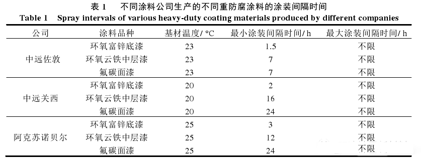 最小涂裝間隔時間決定了連續(xù)施工時的最高效率,最大涂裝間隔時間決定了間斷施工時的最長的施工間斷時間。即,如果超過了最長涂裝間隔時間,那防腐涂層的施工質(zhì)量將得不到保證。
