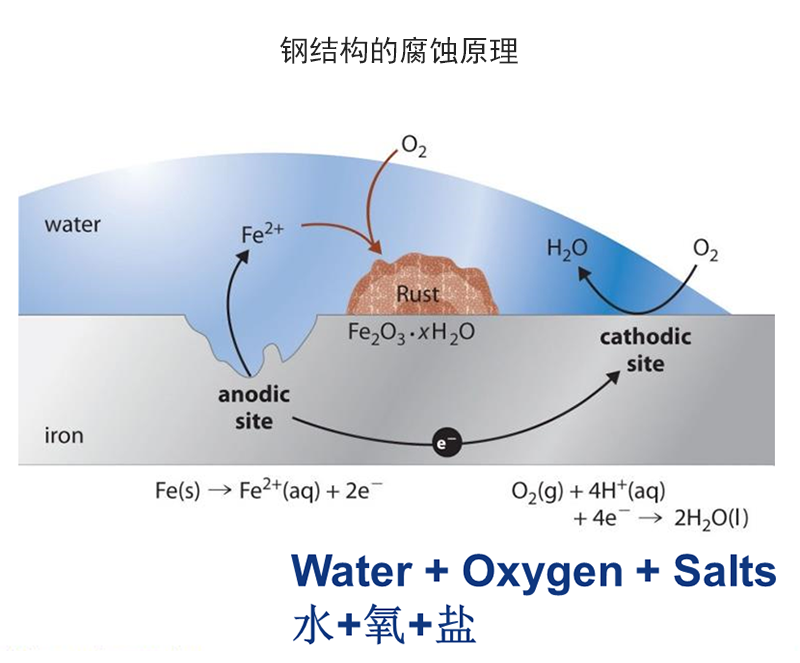 無機(jī)富鋅漆是以無機(jī)聚合物(如硅酸鹽、磷酸鹽、重鉻酸鹽等)為成膜物質(zhì),鋅粉與之反應(yīng),在金屬表面形成鋅鐵絡(luò)合物,形成堅(jiān)實(shí)的防護(hù)涂膜。