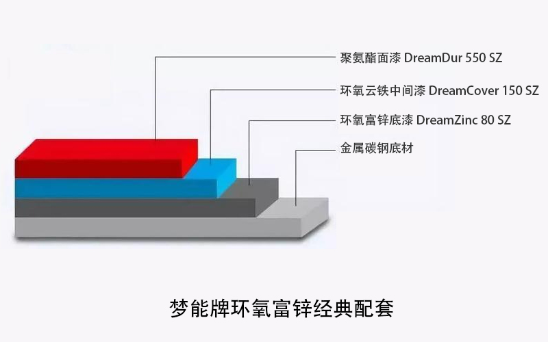 環(huán)氧富鋅底漆由環(huán)氧樹脂、超細(xì)鋅粉、增稠劑、溶劑等組成漆料,采用聚酰胺樹脂作固化劑。分甲乙雙組份包裝。環(huán)氧富鋅底漆漆膜中含有大量的鋅粉,具有陰極保護(hù)作用,防銹性能優(yōu)異;附著力極好;耐油、耐水性好,能與大部分防銹漆和面漆配套使用。