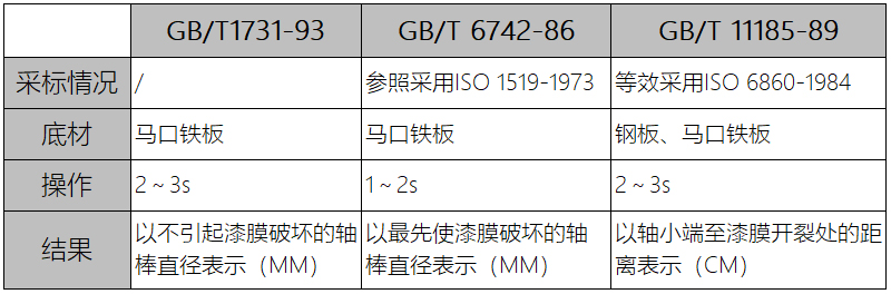 1)GB/T1731-93《漆膜柔韌性測定法》操作簡單方便,被國內大多數(shù)廠家所采用。