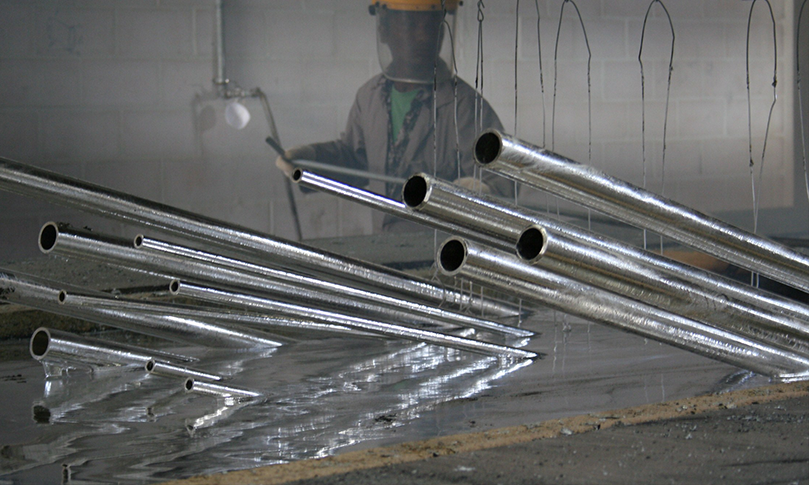 熱浸鍍鋅是鋼鐵制品浸于熔融的鋅液中,通過(guò)鐵鋅之間的反應(yīng)和擴(kuò)散,在鋼鐵制品表面鍍覆附著性良好的鋅合金鍍層。熱浸鍍鋅表面是指進(jìn)行鍍鋅的鋼材表面。