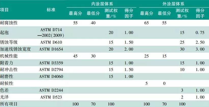 長(zhǎng)期漆膜性能主要包括防腐性能、機(jī)械性能、耐候性3個(gè)方面。比較權(quán)威的測(cè)試標(biāo)準(zhǔn)為KTA實(shí)驗(yàn)室進(jìn)行的IICL測(cè)試,另外中國(guó)集裝箱協(xié)會(huì)(CCIA)組織制定的JH/TE08—2015《集裝箱用水性涂料涂膜檢驗(yàn)方法和驗(yàn)收標(biāo)準(zhǔn)》中對(duì)漆膜長(zhǎng)期性能的要求主要參考借鑒IICL測(cè)試方法。