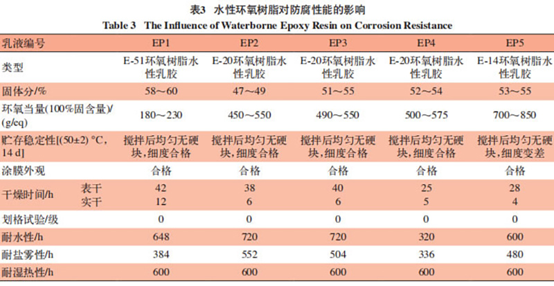 2.1 水性環(huán)氧樹脂對(duì)涂膜防腐性能的影響