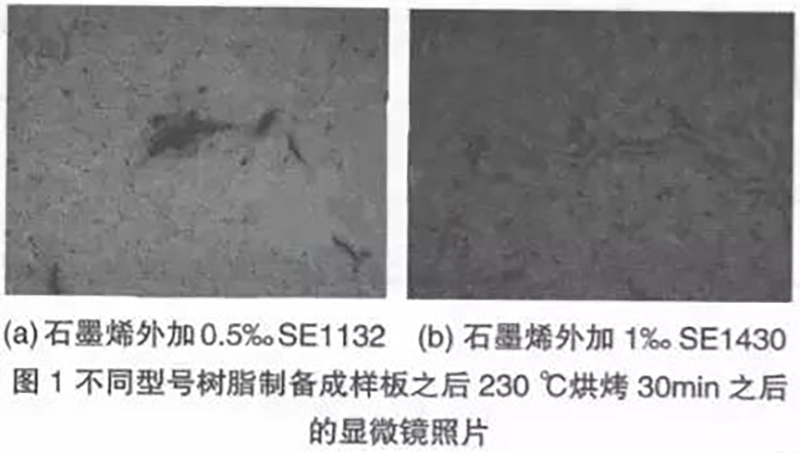 分析認(rèn)為SE1430中氧含量更高,有助于石墨烯的分散,而分散均勻的石墨烯有助于活性自由基在材料內(nèi)部的分散,加速固化過(guò)程,因此表觀呈現(xiàn)出活性的增加。