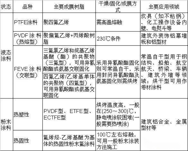 2、 從成膜基料氟樹脂的類型來分,有以下幾種: