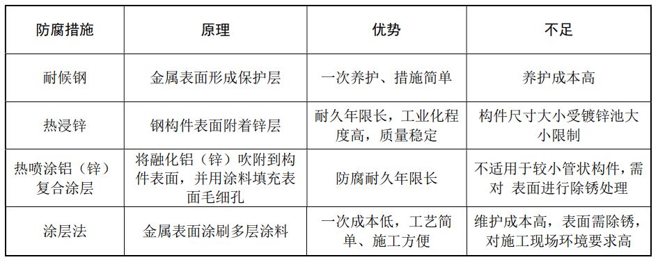 鋼結(jié)構(gòu)常用防腐措施對比如下表所示: