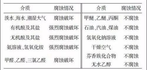 鎂合金在不同的腐蝕介質中表現(xiàn)出不同的腐蝕特征,在干燥的環(huán)境中,表面易生成灰色的保護膜而不易腐蝕;在農村及工業(yè)大氣中發(fā)生中等侵蝕,而在大多有機介質中則不受腐蝕。不同介質中的具體腐蝕情況如下:
