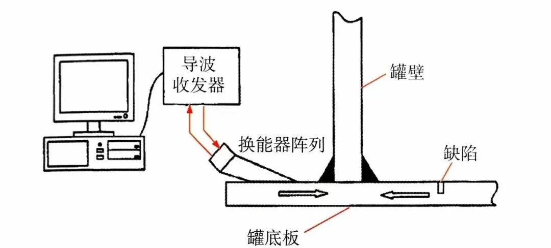 超聲導波是沿著結構長度傳播并被結構幾何邊界導向約束的彈性波,常用于板中缺陷檢測和結構狀態(tài)評估。在厚度與波長相當?shù)陌宀闹袀鞑サ牟?,稱為板波(又稱平板導波),它主要采用Lamb波進行檢測,具有傳播距離遠、快速便捷、檢測精度不受罐內(nèi)介質(zhì)影響等特點,適合于罐底板和壁板的在線檢測。