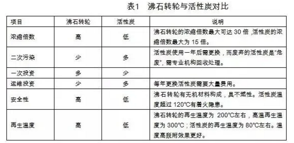 涂裝車間生產(chǎn)過程中會產(chǎn)生大量VOC廢氣,其特點(diǎn)是濃度低,風(fēng)量大。若采用常規(guī)焚燒法治理廢氣,會產(chǎn)生高昂的運(yùn)行費(fèi)用。沸石轉(zhuǎn)輪和活性炭均是將低濃度大風(fēng)量的VOC氣體濃縮成高濃度小風(fēng)量的裝置,沸石轉(zhuǎn)輪與活性炭使用條件和原理相似,但沸石轉(zhuǎn)輪諸多性能都優(yōu)于活性炭。