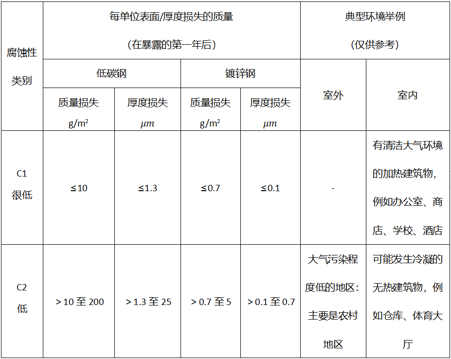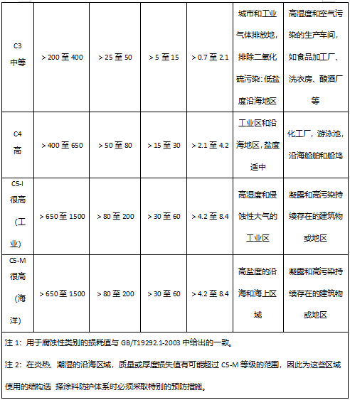 表3.2-1 大氣腐蝕性類別和典型環(huán)境的例子