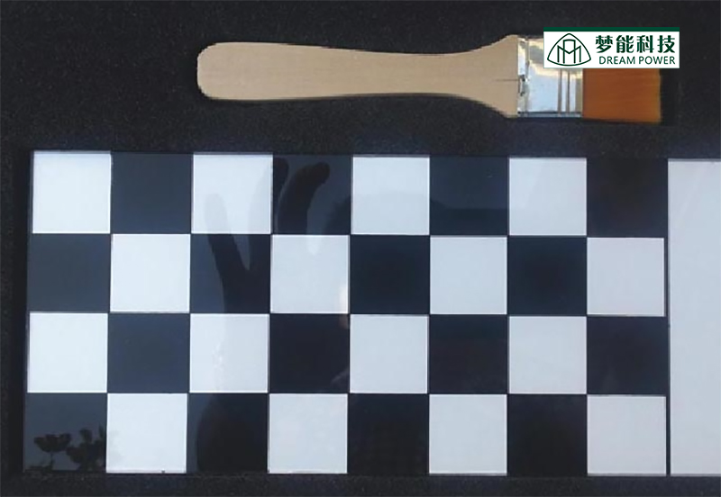干遮蓋力的測(cè)定方法也可采用刷涂法工藝。在天平上稱出盛有試樣的杯子和軟毛刷的總質(zhì)量,將試樣刷在黑白格玻璃板上,涂刷時(shí)應(yīng)快速均勻,防止將試樣刷在玻璃板的邊緣上,然后把已涂刷的黑白格玻璃板放入(50±2)℃的電熱鼓風(fēng)箱內(nèi),放置0.5h,干燥后再把玻璃板置于木制暗箱內(nèi),離磨砂玻璃片10~20cm,玻璃板與水平傾斜成35°~40°交角,在2支15W日光燈燈光下進(jìn)行觀察,以涂層完全遮蓋黑白格為準(zhǔn)。