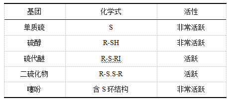 絕緣油中硫的存在形式多種多樣,主要有活性硫和非活性硫,各煉制變壓器油廠家使用的原油中所含有的硫化物分為五大類,如表1所示。