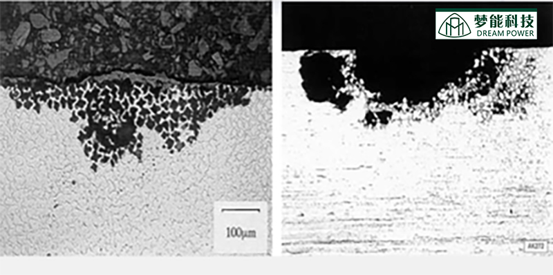 縫隙腐蝕與點蝕有許多相似之處,兩者在成長階段的機理是很一致的,都是以形成閉塞電池為前提,但它們在形成過程上有所不同??p隙腐蝕是在腐蝕前就已存在縫隙,腐蝕一開始就是閉塞電池作用,而且縫隙腐蝕的閉塞程度較點蝕的大。點蝕是通過腐蝕過程的進行逐漸形成蝕坑(閉塞電池),而后加速腐蝕的?;蛘哒f,前者是由于介質(zhì)的濃度差引起的;而后者一般是由鈍化膜的局部破壞引起的。與點蝕相比較,對同一種金屬而言,縫隙腐蝕更易發(fā)生,其臨界縫隙腐蝕溫度(Critical Crevice Corrosion Temperature,CCT)較臨界點蝕溫度(CPT)更低。從環(huán)形陽極極化曲線上的特性電位來看,縫隙腐蝕的臨界電位要比點蝕電位低。當(dāng)Ep<E<Eb時,對點蝕來說,原有的點蝕可以發(fā)展,但不產(chǎn)生新的蝕孔,而縫隙腐蝕在該電位區(qū)內(nèi),蝕孔既能發(fā)生,也能發(fā)展。此外,在腐蝕形態(tài)上點蝕較窄而深,縫隙腐蝕較廣而淺??梢钥闯?,縫隙腐蝕與點蝕的形成過程不完全一樣。前者是介質(zhì)的電化學(xué)不均勻性引起的;而后者則是由于材料的鈍態(tài)或保護層的局部破壞引起的。這兩種局部腐蝕由于形成了類似的閉塞電池,在發(fā)展時,可以是相似的。臨界鈍化電流密度應(yīng)可作為合金對縫隙腐蝕的敏感性的一個參數(shù),臨界鈍化電流越大,縫隙腐蝕敏感性也越大。