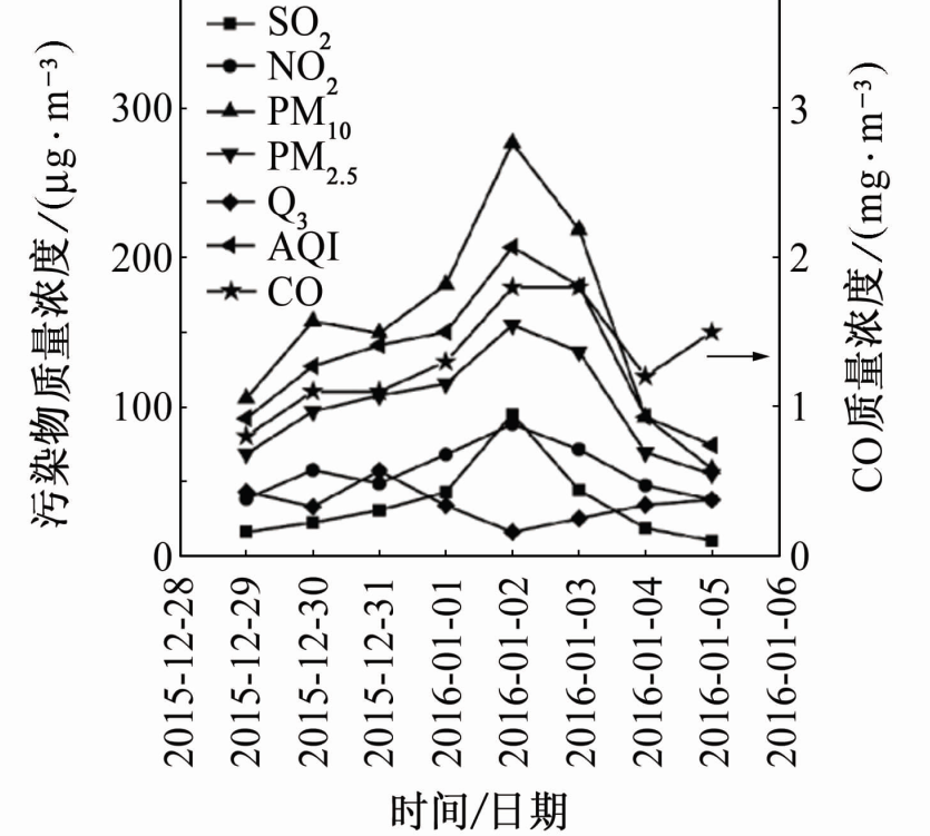 圖1 污染物濃度及AQI監(jiān)測(cè)數(shù)據(jù)