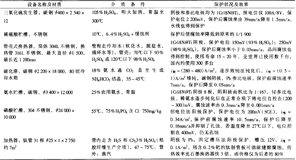 表2 列出一些國內(nèi)外陽極保護(hù)應(yīng)用實(shí)例
