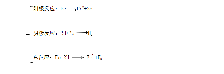 電化學(xué)腐蝕是指金屬表面與電解質(zhì)發(fā)生電化學(xué)作用而引起的破壞。在電化學(xué)腐蝕過(guò)程中,金屬的氧化(陽(yáng)極反應(yīng))和氧化劑的還原(陰極反應(yīng))在被腐蝕金屬表面的不同區(qū)域上同時(shí)進(jìn)行,電子可通過(guò)金屬基體從陽(yáng)極區(qū)流向陰極區(qū),從而產(chǎn)生電流。例如,碳鋼在酸中腐蝕時(shí),在陽(yáng)極區(qū)鐵被氧化為Fe2+ ,所釋放的電子通過(guò)鋼的基體由陽(yáng)極(Fe)流至陰極(Fe3C)表面,被H+吸收而產(chǎn)生氫氣,即發(fā)生下列腐蝕反應(yīng):