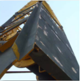 已投入使用的復(fù)合涂層,從溶劑型無機(jī)富鋅涂料產(chǎn)生脫落或剝落是一種災(zāi)難性的涂層失效,其原因是涂料的固化程度未滿足要求,后續(xù)涂層在干燥和固化過程會有體積上收縮,這種收縮會產(chǎn)生一定的應(yīng)力,而且會傳遞至底漆,當(dāng)?shù)灼峁袒潭容^低時,無法抵抗收縮產(chǎn)生的應(yīng)力而脫落和剝離。如圖1所示。