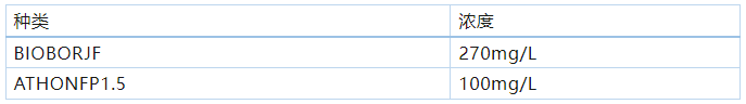 表1發(fā)動(dòng)機(jī)所允許的生物殺菌劑的濃度