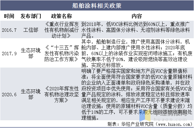 船舶涂料是用于船舶及海洋工程結(jié)構(gòu)物各部位,滿足防止海水、海洋大氣腐蝕和海洋生物附著及其他特殊要求的涂料的統(tǒng)稱。我國(guó)在涂料、涂裝的相關(guān)政策方面,環(huán)保、降低VOC排放依舊是一個(gè)重要方向,國(guó)家也出臺(tái)了多項(xiàng)VOC削減計(jì)劃。