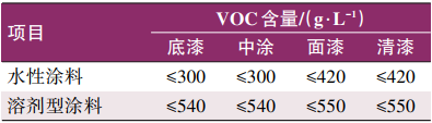 國務(wù)院《打贏藍(lán)天保衛(wèi)戰(zhàn)三年行動(dòng)計(jì)劃》(國發(fā)〔2018〕22號)要求“揮發(fā)性有機(jī)物(VOCs)全面執(zhí)行大氣污染特別排放極限值”,第二十條指出:“重點(diǎn)區(qū)域禁止建設(shè)生產(chǎn)和使用高VOCs含量的溶劑型涂料”。從2018年開始,國家對重點(diǎn)區(qū)域高VOCs涂料的生產(chǎn)和使用進(jìn)行了限制,不允許建設(shè)生產(chǎn)和使用高VOCs涂料的項(xiàng)目。《長三角地區(qū)2018—2019年秋冬季大氣污染綜合治理攻堅(jiān)行動(dòng)方案》中也明確禁止生產(chǎn)高VOCs含量有機(jī)溶劑型涂料、油墨和膠黏劑的新、改、擴(kuò)建項(xiàng)目,開始對生產(chǎn)和使用高VOCs涂料的項(xiàng)目亮起紅燈。其他各省市的VOCs治理相關(guān)文件也要求對高VOCs涂料生產(chǎn)和使用項(xiàng)目進(jìn)行限制。但是,對工程機(jī)械而言,高VOCs涂料卻沒有判定標(biāo)準(zhǔn)。2013年9月,國務(wù)院印發(fā)《大氣污染防治行動(dòng)計(jì)劃》提出:“在石化、有機(jī)化學(xué)、涂料、包裝印刷等行業(yè)實(shí)施揮發(fā)性有機(jī)物綜合整治,完善涂料等產(chǎn)品揮發(fā)性有機(jī)物限制標(biāo)準(zhǔn)”。2014年,《建筑鋼結(jié)構(gòu)防腐涂料中有害物質(zhì)限量》(GB30981—2014)發(fā)布,但是并不適用于工程機(jī)械。2020年3月4日發(fā)布的《工業(yè)防護(hù)涂料中有害物質(zhì)限量》(GB30981—2020)對工程機(jī)械用涂料VOCs含量有專門和具體要求,如表1。該標(biāo)準(zhǔn)已于2020年12月1日開始實(shí)施,工程機(jī)械使用的涂料VOCs含量不能超過表1的限值,否則屬于不合格產(chǎn)品。