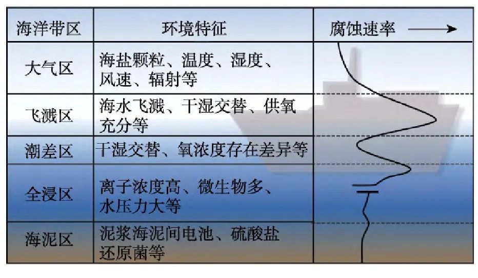 圖1 艦船所處海洋腐蝕環(huán)境區(qū)帶