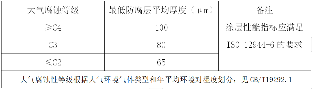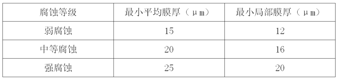 表1:熱鍍浸鋅防腐工藝防腐層厚度要求