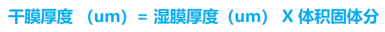 例:環(huán)氧通用底漆體積固體含量為57%,干膜厚度達到50微米時,計算要施工濕膜厚度是多少時才能達到要求。