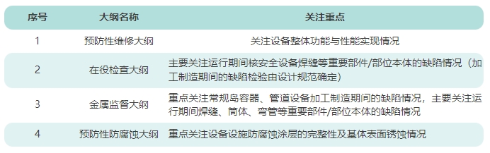 核電站設(shè)備維修、在役檢查管理可依據(jù)核安全法規(guī)、技術(shù)導(dǎo)則及相應(yīng)技術(shù)規(guī)范(如ASME規(guī)范)執(zhí)行,而預(yù)防性防腐蝕管理并無相關(guān)的標(biāo)準(zhǔn)或?qū)t可遵循,早期防腐蝕管理主要參考常規(guī)電力、化工行業(yè)標(biāo)準(zhǔn)以及美國電力研究院(EPRI)、國際原子能機(jī)構(gòu)(IAEA)提出的技術(shù)導(dǎo)則開展各項(xiàng)防腐蝕管理活動。