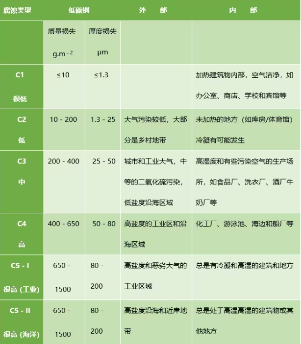 按照國際標準化組織的腐蝕分類體系, ISO12944標準將腐蝕類型分為以下幾類。