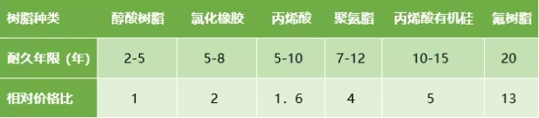 油脂≤酚醛≤醇酸樹脂≤氯化橡膠系≤丙烯酸系≤聚氨脂系≤丙烯酸有機硅≤氟樹脂類