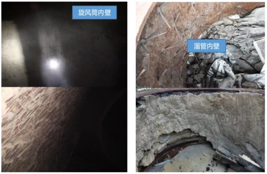 旋風(fēng)筒、溜管及三次風(fēng)管等高溫設(shè)備,內(nèi)壁均敷設(shè)有防火、隔熱材料,如下圖: