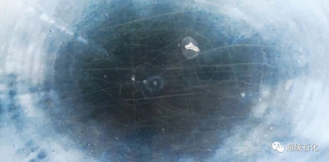 (4) 如發(fā)現(xiàn)鐵污染等使316L表面鈍化膜損壞的情況,可對銹蝕位置拋光,去除浮銹,拋光后需符合最小壁厚要求,用不銹鋼酸洗鈍化膏均勻覆蓋在拋光位置,與未拋光位置至少搭接50 mm,用自來水(水中Cl-質(zhì)量濃度不能超過30 mg/L)對鈍化位置沖洗或用清潔濕抹布擦除鈍化膏,使其形成鈍化膜。對316L不銹鋼酸洗鈍化后,用內(nèi)窺鏡質(zhì)量檢驗(yàn)合格,如圖6所示。