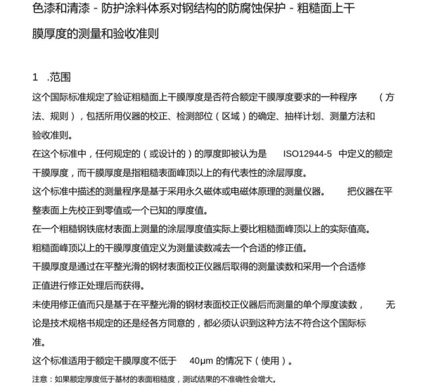 ISO19840-2012 涂料和清漆.用防護漆系統(tǒng)對鋼結(jié)構(gòu)的腐蝕防護.粗糙表面上干膜厚度的測量和驗收標準