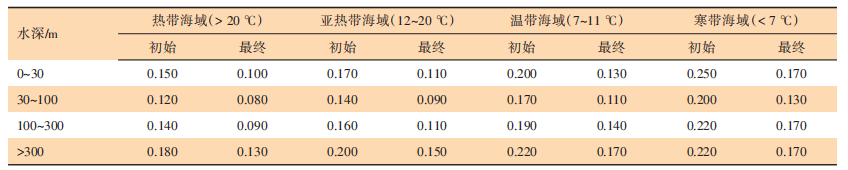 根據(jù)國(guó)際標(biāo)準(zhǔn)和海洋環(huán)境數(shù)據(jù),當(dāng)水深>500 m后,海水的物理性質(zhì)(溶解氧、溫度、壓力、鹽度、pH 值、海流和鈣鎂沉積層等)會(huì)明顯區(qū)別于淺層海水,由于這個(gè)海洋物理躍層的存在,直接影響到犧牲陽(yáng)極在深水環(huán)境中的陰極保護(hù)性能。