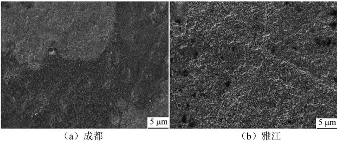 圖3 紫銅在成都、雅江、理塘大氣環(huán)境中暴露一年后的SEM形貌
