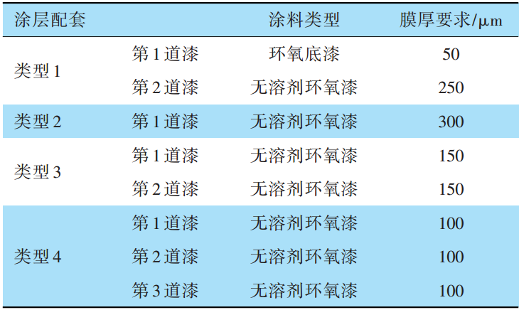 表1 常見的無溶劑環(huán)氧漆涂層配套