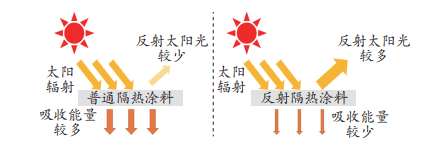 圖1 普通隔熱涂料與反射隔熱涂料的反射隔熱性能對比