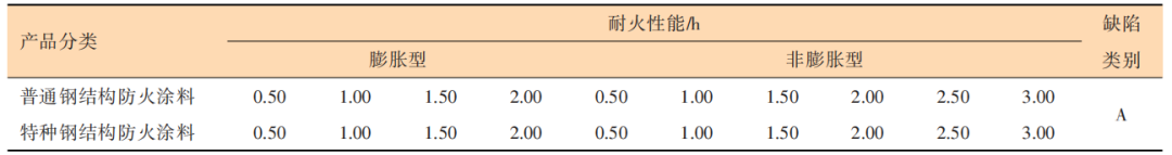 表4 鋼結(jié)構(gòu)防火涂料耐火性能等級
