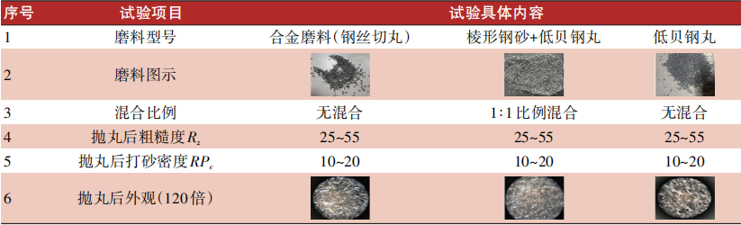 在拋丸前采用高溫蒸汽機對工件表面進行清潔,清洗后工件表面殘留的水分要進行烘干,烘干后對工件表面質(zhì)量進行檢查;研究采用不同拋丸磨料對工件表面質(zhì)量的影響,主要對拋丸后工件表面的粗糙度、清潔度、可溶性鹽含量、RPc、除銹等級等技術指標為主進行研究。值得注意的是,與供方進行充分的技術交流后,要雙方簽署明確的試驗測試標準及方法,以便產(chǎn)生分歧時處理。