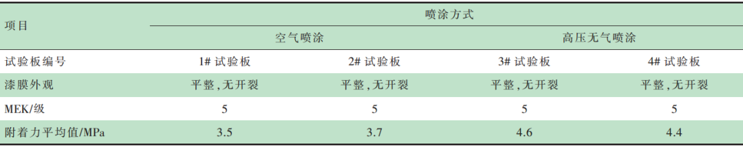表1 不同噴涂方式涂層MEK及附著力實(shí)驗(yàn)結(jié)果