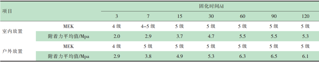 表2 漆膜固化效果隨時(shí)間變化實(shí)驗(yàn)結(jié)果