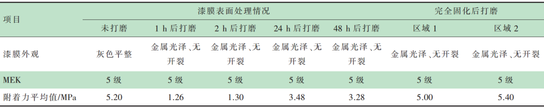 表3 打磨前后涂層MEK及附著力測(cè)試結(jié)果
