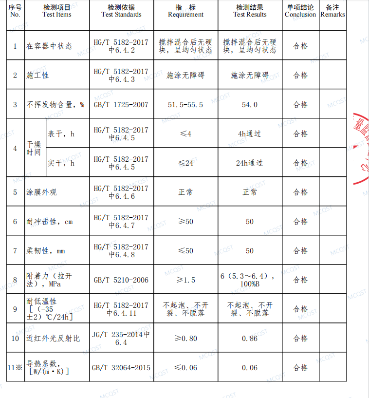 施工性檢測(依據(jù) HG/T 5182 - 2017 中 6.4.3)顯示施涂無障礙,這表明涂料在儲存和施工環(huán)節(jié)具備良好的穩(wěn)定性與操作性,便于實際工程中的涂抹作業(yè) 。