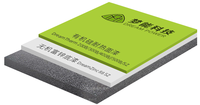 1、前道涂層:夢(mèng)能無(wú)機(jī)硅酸鋅底漆,有機(jī)硅耐熱底漆