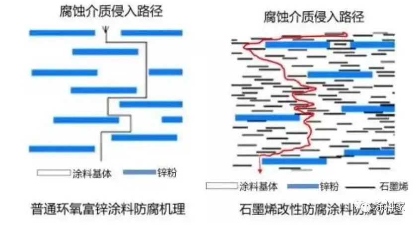 與純石墨烯防腐涂料相比,石墨烯復合防腐涂料能夠兼顧石墨烯優(yōu)異的化學穩(wěn)定性、快速導電性、突出的力學性能和聚合物樹脂的強附著力、成膜性,可協(xié)同提高涂料的綜合性能。