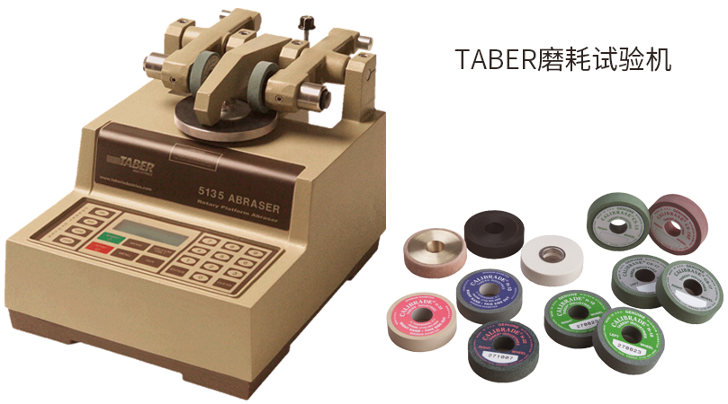 2)橡膠砂輪:選用Taber公司的CS-10F/CS-10/CS-17或磨耗作用相當(dāng)?shù)纳拜?。(由于橡膠砂輪的橡膠粘結(jié)材料會逐漸變硬,因而應(yīng)檢查其硬度是否符合生產(chǎn)商規(guī)定的技術(shù)要求。如果已超過了橡膠砂輪上生產(chǎn)商日期標(biāo)注的截止日期,或者對于沒有給出截止日期的自購買之日起已超過一年的,橡膠砂輪不能再使用。)